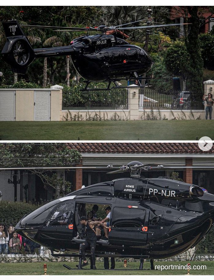 neymar arrived Brazil training for the upcoming FIFA world cup in his personalized black Mercedes helicopter worth an estimated $12 million.
